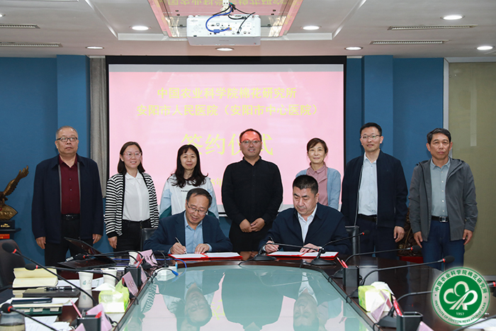 张勇表示,安阳市人民医院(安阳市中心医院)是我市最大的集医疗、教学、科研、预防保健和院内、外急救为一体的国家“三级甲等”现代化综合医院。中棉所作为农业科研国家队,为推动我国棉花科技进步、保障国家棉花产业安全作出了巨大贡献。此次签约对安阳市人民医院的业务是一次促进,安阳市人民医院将在快速就医住院、绿色转诊通道、健康知识讲座、上门服务老专家等方面给予中棉所大力支持,提供优质高效的医疗保障,为科研人员健康保驾护航。同时,安阳市人民医院将以此签约为契机,借助棉花生物育种与综合利用全国重点实验室等资源,深化与中棉所在交叉学科领域的合作研究工作。