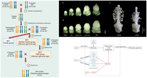 The Chinese Academy of Agricultural Sciences has made a significant discovery regarding the mechanism of male sterility in upland cotton. Identifying a novel sterile line with a genetic background of wild cotton, the study sheds light on the pollen abortion mechanism and presents a theoretical basis for creating new type of sterile line and utilizing heterosis of wild cotton through distant hybridization. The findings have been published in the journal of Industrial Crops and Products.