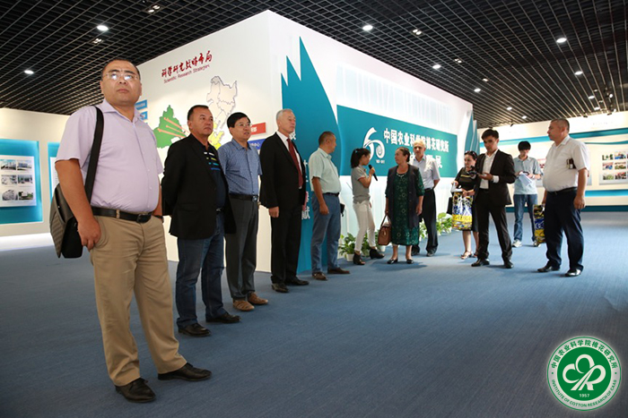 在所期间,乌方代表团一行先后考察了我所试验基地,参观了科技成果展、棉花生物学国家重点实验室、纤维检验测试中心、国家棉花中期库和胡杨河试验站等。