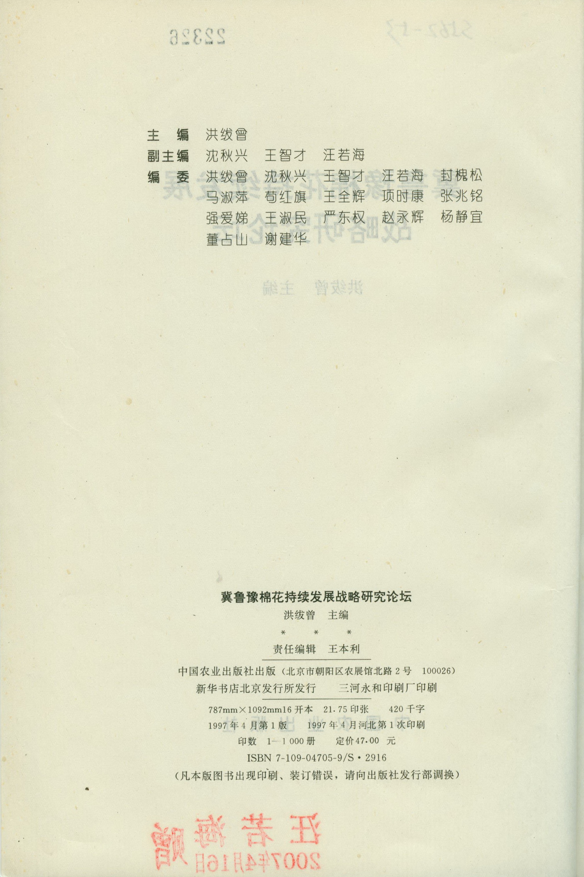 冀鲁豫棉花持续发展战略研究论坛