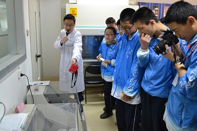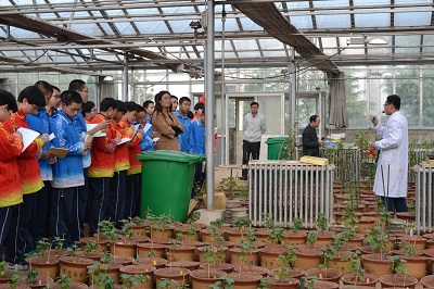 为了响应科技部的号召,为充分发挥我实验室的科普基地作用,积极搭建青少年实践教育平台,我实验室与安阳市第五中学联合开展了“生物学科普实地教研活动”。2015年4月2日下午,安阳市第五中学师生约200多人,在老师的带领下,来到我实验室参观学习。我所部分科技人员以及研究生带领学生们参观了棉花生物学国家重点实验室公共平台、棉花科技成果展厅以及棉花转基因科普馆等地的仪器平台、实物展示、现场实验、声像影视等,实验室老师饶有兴趣地与五中师生互动交流,向师生们介绍了我所科研进展情况。活动期间学生们兴趣盎然、积极提问,充分与我所研究生进行了交流与沟通。在实验室,我所志愿者为学生们讲解了DNA、RNA的提取过程;在温室为他们讲解了棉花培育、筛选的程序;在科普馆,通过观看科普动画,同学们了解了棉铃虫的危害和转基因知识。