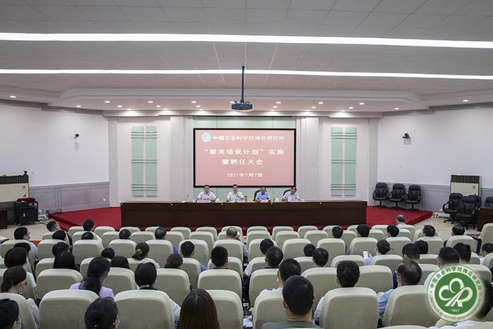 2021年7月7日,中国农业科学院棉花研究所在产业楼学术报告厅召开“聚英培优计划”实施暨首批聘任大会,所长李付广,党委副书记、纪委书记宋国立,副所长彭军出席大会,副所长马雄风主持大会并对近期人事相关政策进行解读。
