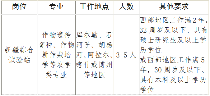 因工作需要,现公开招聘新疆综合试验站工作人员3-5人,现将有关招聘事项公告如下: