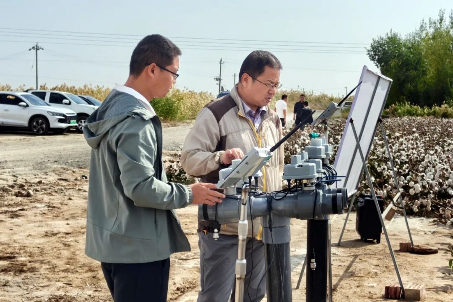 当天,来自中国农业大学、中国农业科学院棉花研究所和自治区农业科学院等单位的领导专家齐聚田间,现场考察智慧栽培技术实际应用成效。