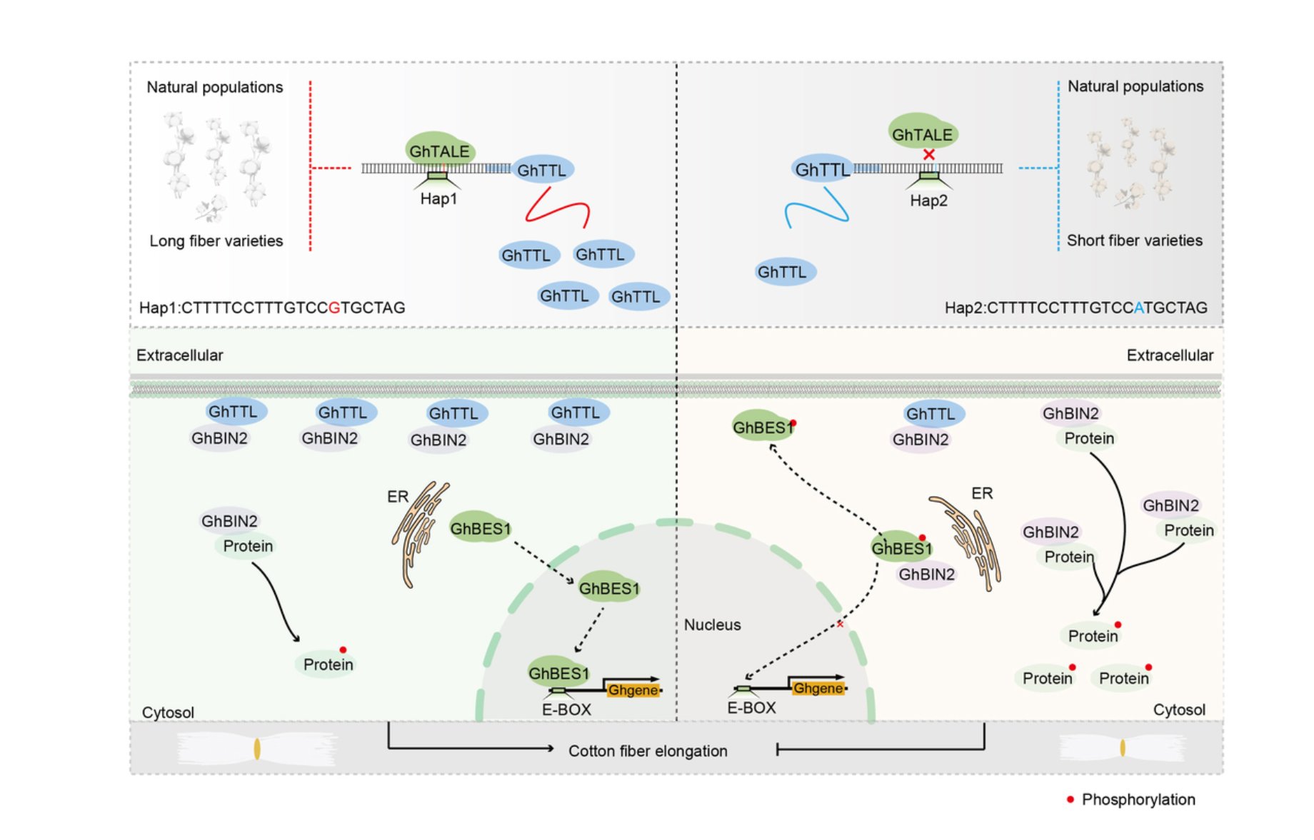 该研究明确了支架蛋白GhTTL是棉纤维伸长的关键正调控因子,发现启动子区域的自然多态性显著影响上游转录因子对其的结合亲和力,从而调节该蛋白在不同棉花品种中的表达水平。